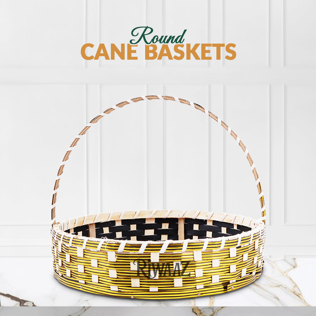 Set of 5 - Round Golden Cane Basket for Gifting, wedding decoration