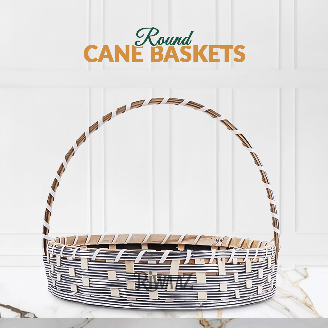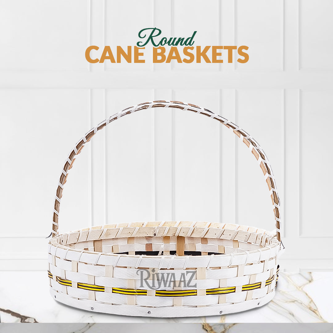Set of 5 - Round White Cane Basket for Gifting, wedding decoration