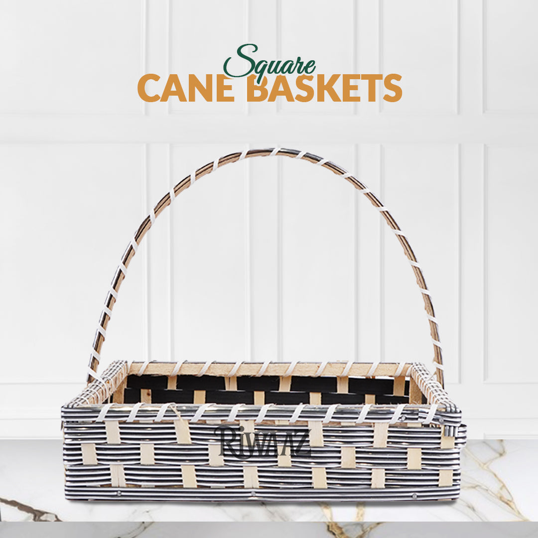 Set of 5 - Silver Square Cane Basket for Gifting, wedding decoration
