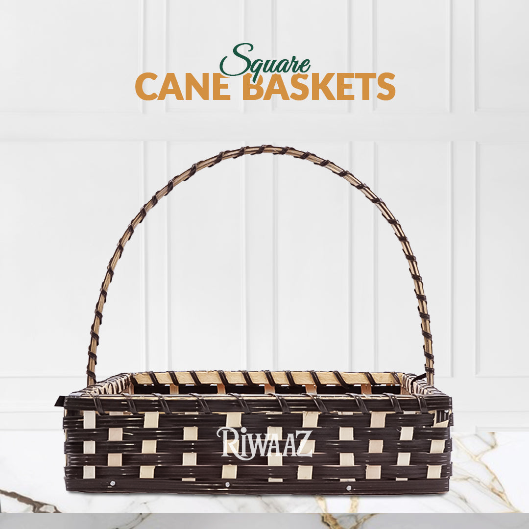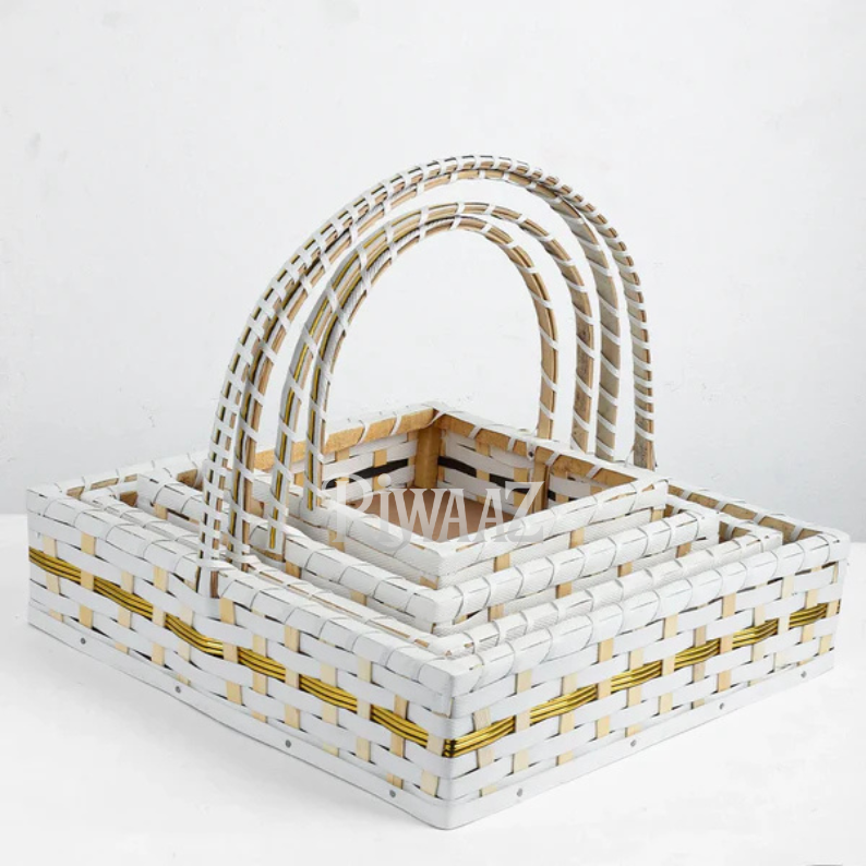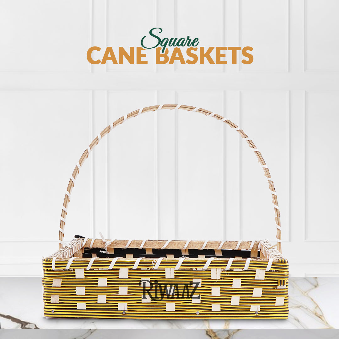 Set of 5 - Golden Square Cane Basket for Gifting, wedding decoration