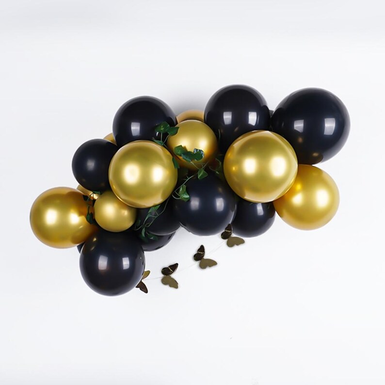 Black and Gold Balloon Arch Kit with Butterflies & Leaves | Birthday, Baby Shower, Graduation Party Decor