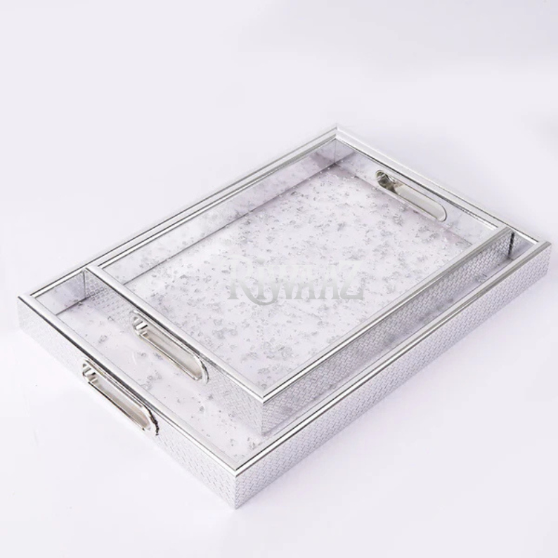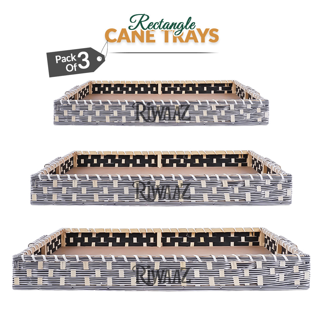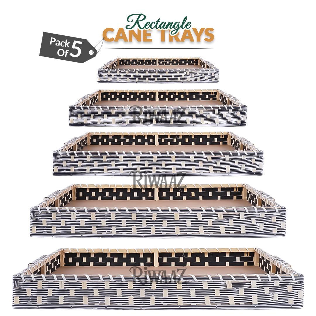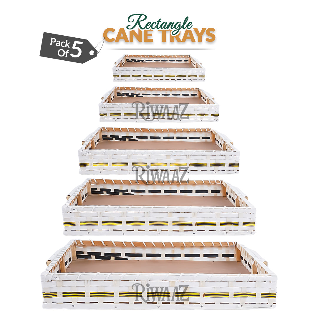 Set of 5 - Silver Rectangle Cane Trays Set for gifting