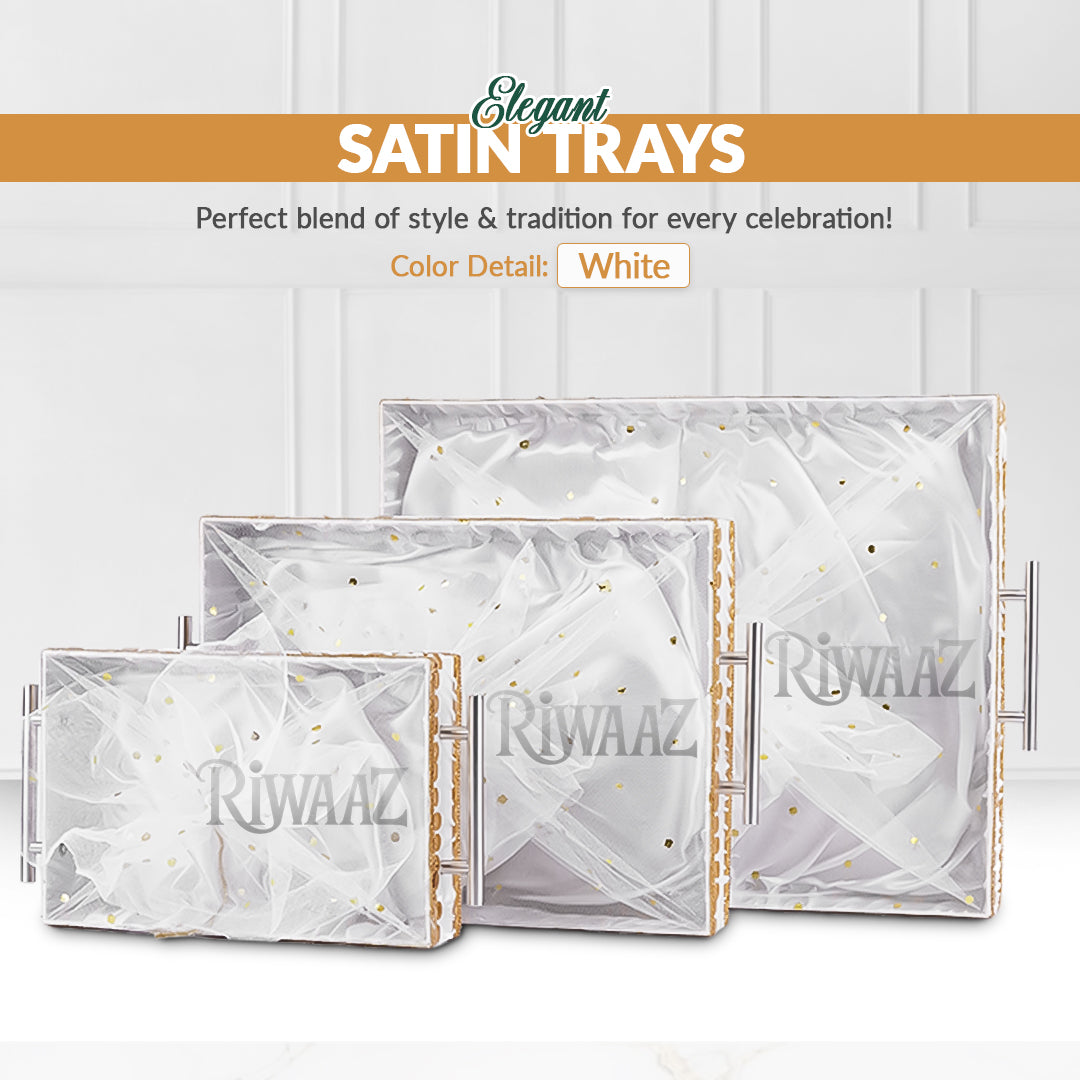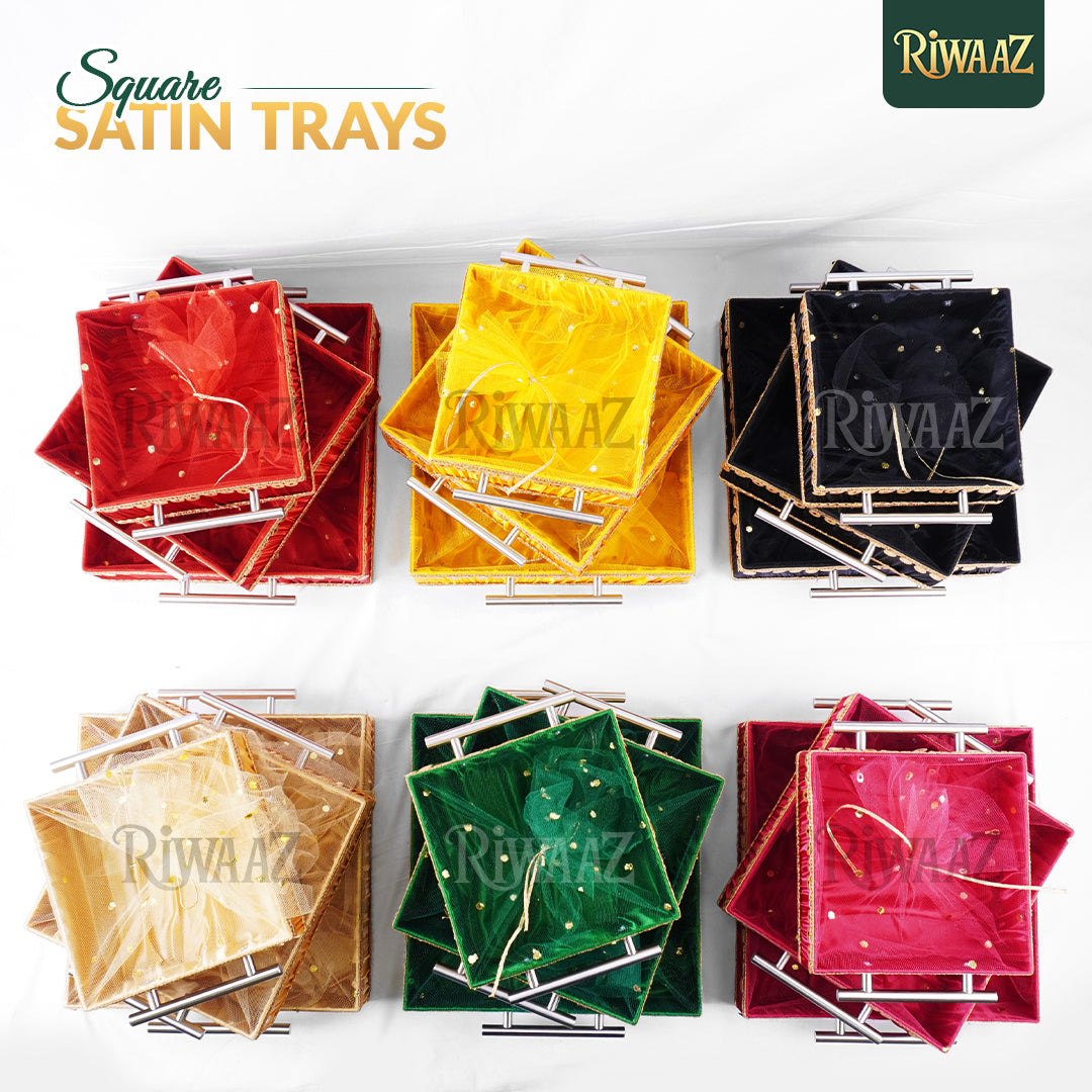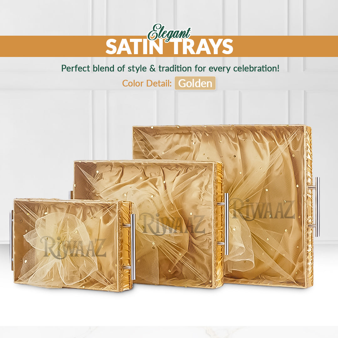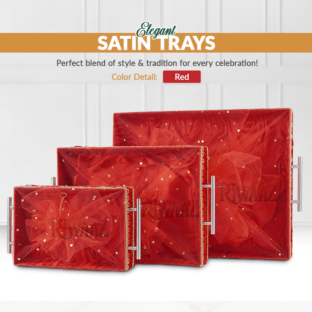 Set of 3 Satin Gift Trays – Bridal Platter for Mehndi, Eid, Diwali, Shadi, Nikkah – Indian Pakistani Wedding Decor
