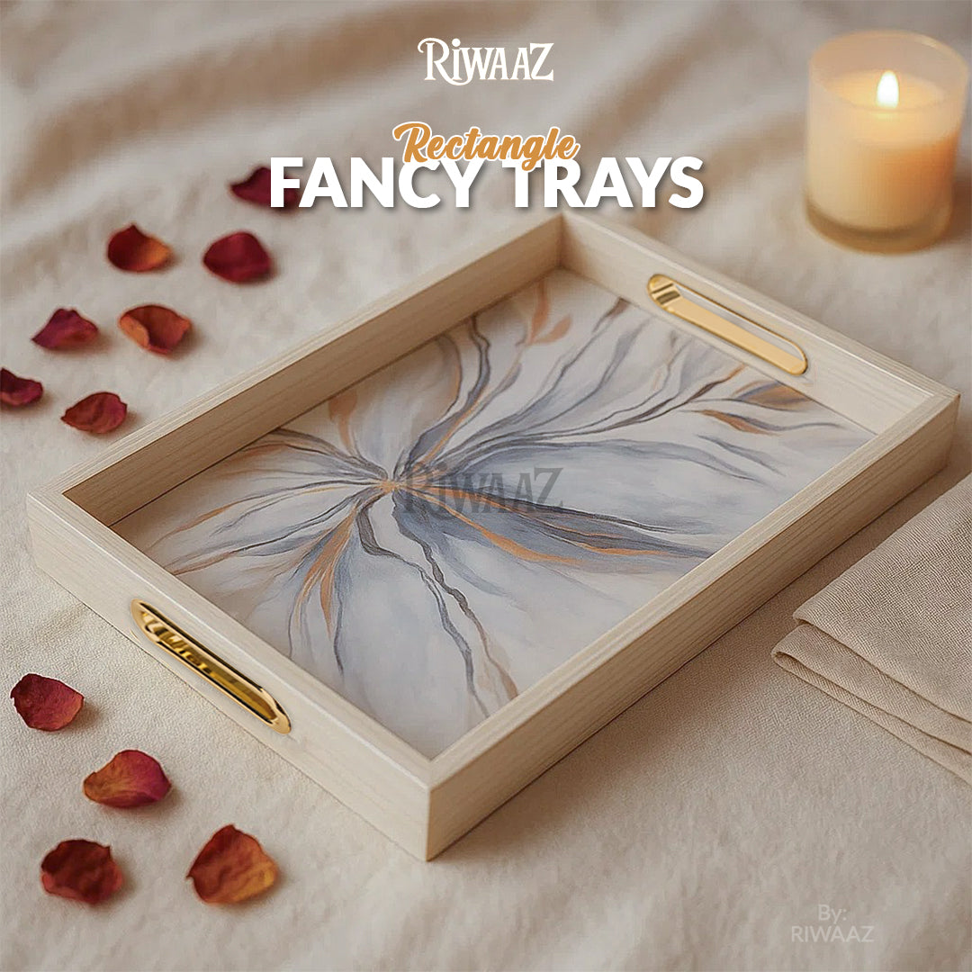 This Set of 2 Marble Textured Fancy Trays is a stylish addition to any home....