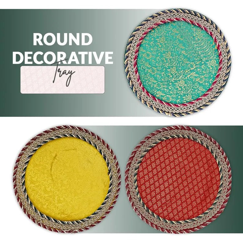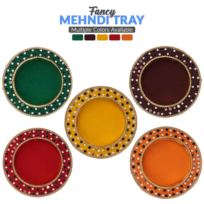 Round Fancy Mehendi Tray – 1pc Velvet & Pearl Decor Tray for Indian Pakistani Wedding, Engagement, Haldi, Roka Presentation
