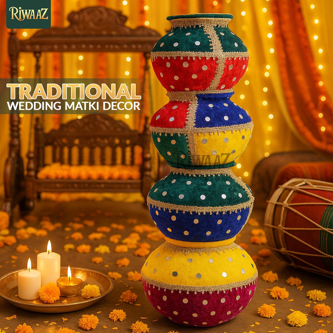 Traditional Colourful Handmade Velvet Matki For Nikkah, Maiyun, Menhdi, Dholki, Indian Wedding, Pakistani Wedding, Shaadi Vivah, Decoration