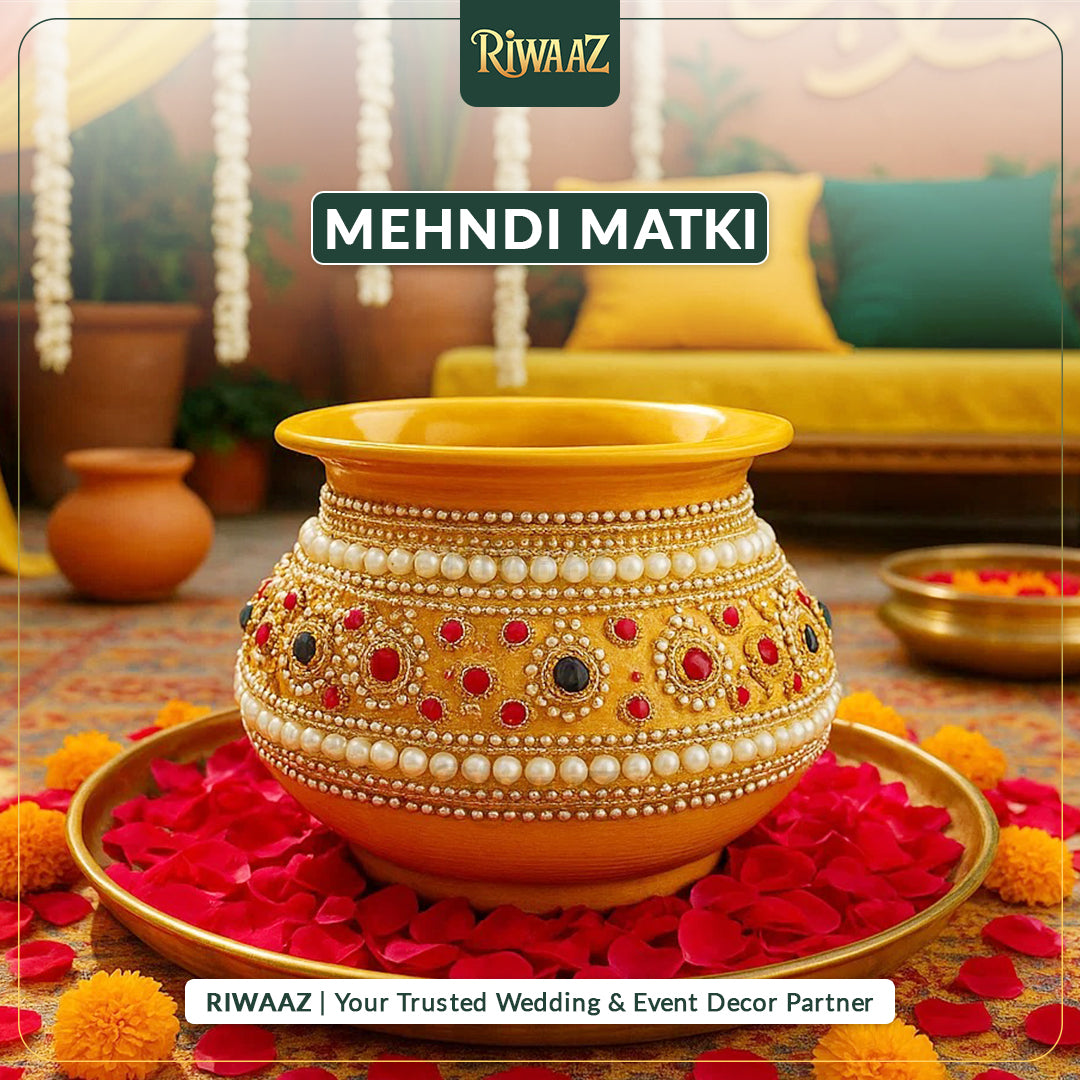 Hand Made Metal Decorated Matki, Accessories, Indian Wedding, Pakistani Wedding,Gold Matki Yellow Matlki Nikkah, Maiyun Menhdi Decoration