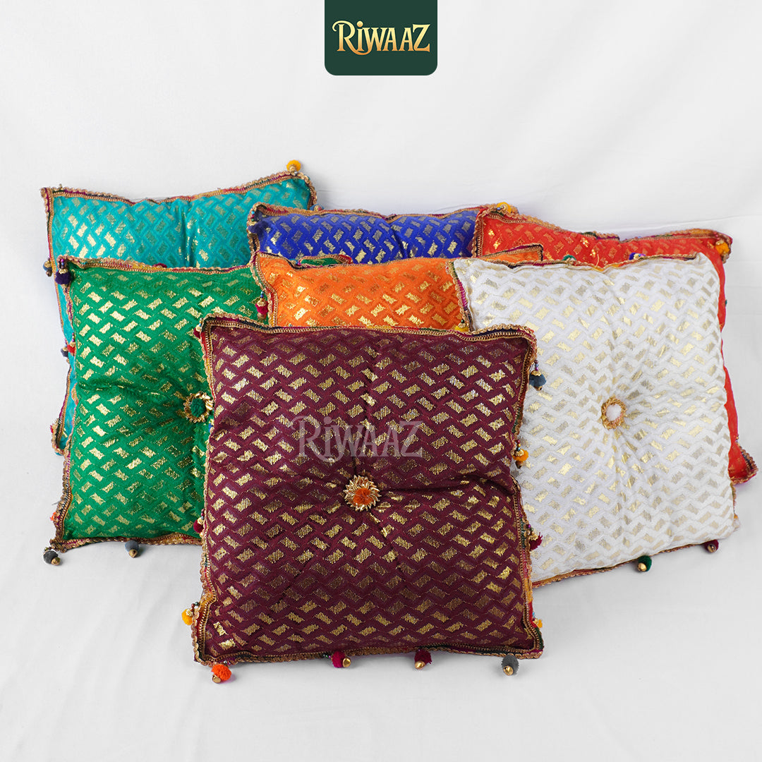 Jamawar Fabric Pillow, Cusion Perfect For Traditional Wedding Decor Including Mehndi, Nikkah, Maiyun, Vivah, and Cultural Celebrate